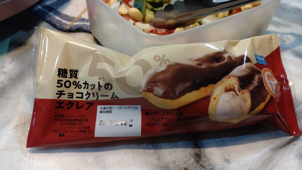 おやつにシャトレーゼの糖質50%のエクレアを食べていたのか。今は滅多に食べませんが、糖質オフのギョーザが、ここのところイオンに置いていないのが困る…