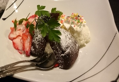 お店の特別サービス。Birthdayのデザート。3人で戴きました。ありがとうございます!