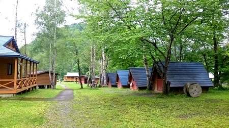昨日、予約しようと思っていたバンガロー。可愛いです。皆さん、駐車場からリヤカーで物を運んでいました。