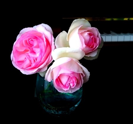 母の見舞いから戻って、雨の庭からピエールドゥロンサールを摘んで飾りました。
