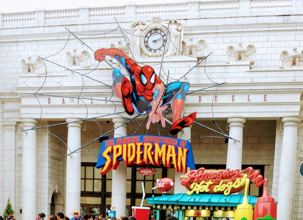 最後に「スパイダーマン」のアトラクションを体験しましたが、凄い待ち時間でした。ヘトヘトになりましたが、このことがきっかけで何だかスパイダーマンが好きになりました。(笑)