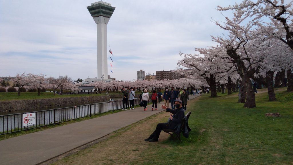 シエスタ函館に立ち寄ってから五稜郭公園の駐車所場に来てみましたが、10分くらいで入場できました。コロナの影響で外国人が見当たらなかったので例年より来場者が少なかったのかもしれません。