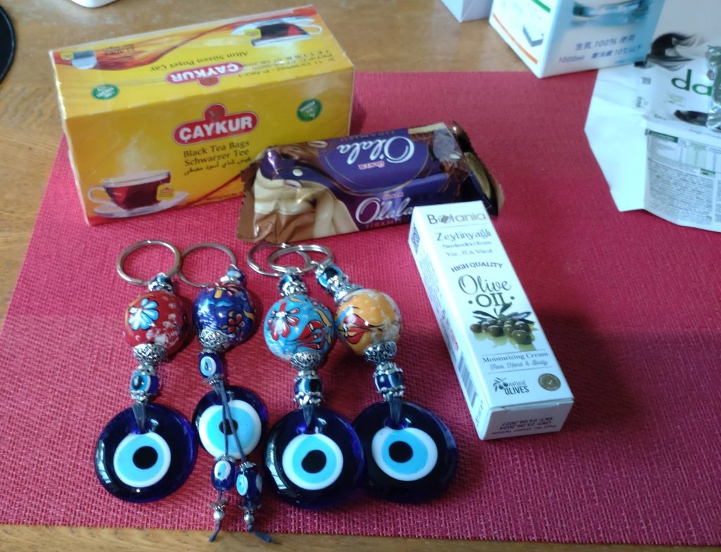 カッパドキアで買ってきたナザーレボンジュ―。10個買うから安くしてと値切って買いました。旅行中に立ち寄ったオリーブの店で買ったオリーブのクリームがとても良かった。