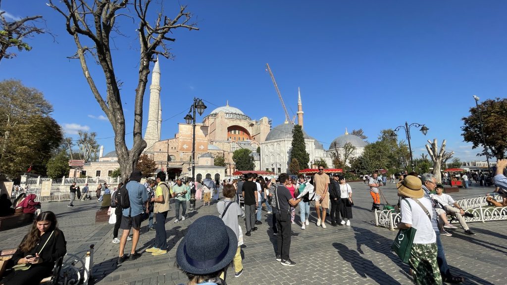 イスタンブールで一番人気なアヤソフィア。ガイドさんは、最近は人気がないといっていましたが、2024年かあら有料化され入場制限の導入によって、1階が礼拝者専用となり、観光客は博物としてのみの入場となったため、アヤソフィアは断念したのだと思います。