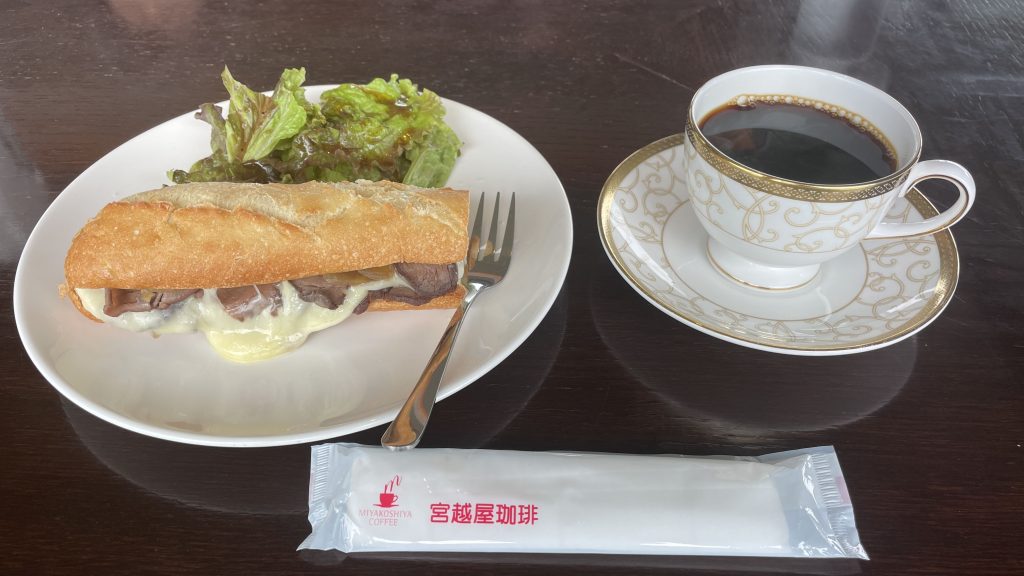 フレンチは、かなりパンチがある珈琲でした。そして、ローストビーフサンドは、少しだけ味見させてもらいましたが、とても上品で美味しかったです。