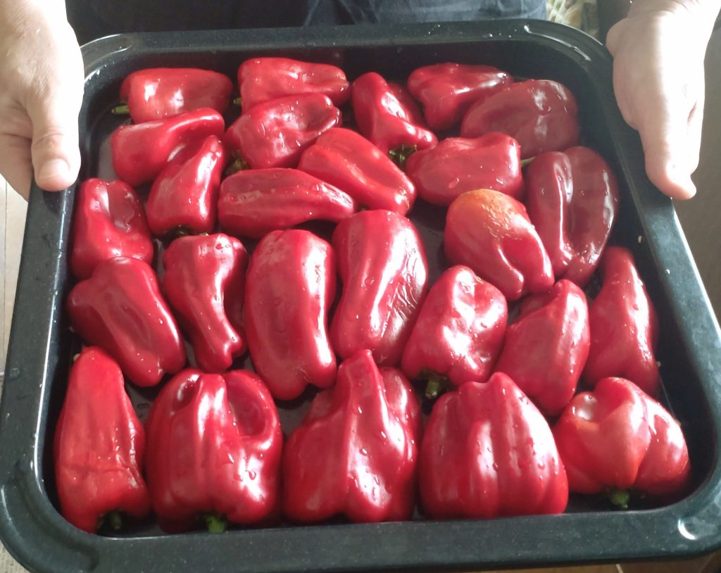 ランチの後、久しぶりに観光農園へ行った。今月の24日で今季の営業を終えるという。手術の前と後で2回くらい行けるかな。赤ピーマンを買ったのと、お店からの好意でこんなにいっぱい。嬉しそうな はじめさん。30分オーブンで焼いたら、とてもイイ匂いに包まれた。