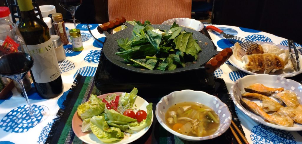家にある食材で簡単な物を作って食べるのが我が家流。今日は富良野のホウレンソウのバター炒めがメイン。ただのバターではなく、はじめさんが大事に食べているセージバターです。