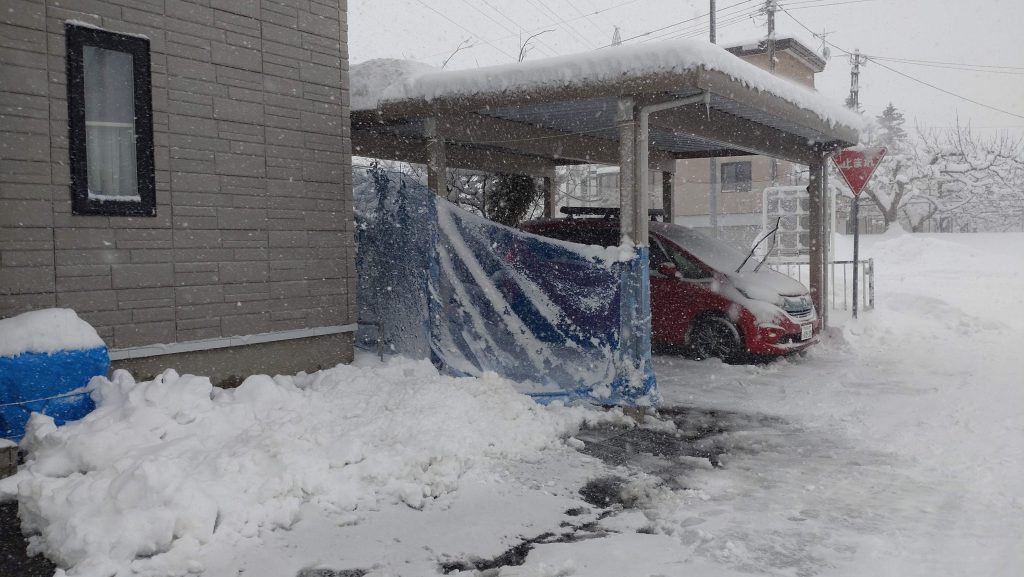 以前は間口全部を綺麗に除雪していたが、やればやるほど雪を押し付けられるだけなので、全部はやらないことにした。カーポートの中にも雪が入るし、庭や裏口もやらなければならない。カーポートの上にも容赦なく屋根からの雪が落ちて積もる…、全くキリがない。