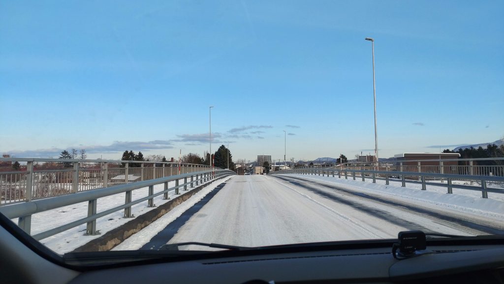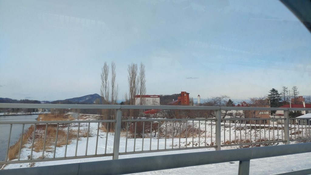 イヴは断続的に雨でクリスマスは断続的に雪になるそうです。1週間以上もスノーシューをしていませんでした。久しぶりにグランドへ行ってみると、だいぶ雪が融けていました。やはり外へ出ると気分が良い。田川橋を渡ると空が綺麗でした。