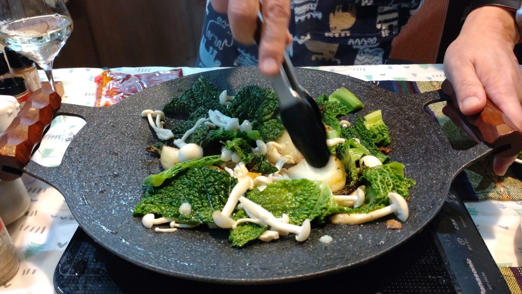 肉厚なキャベツで、ロールキャベツにすると美味しいのだそうですが、煮込み料理は時間がかかるので炒めることにしました。