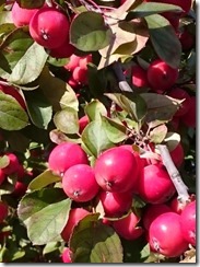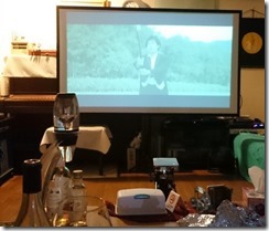 鈴生りの「ひめりんご」。樽熟赤ワインを飲みながら「ぶどうのなみだ」をスクリーンで観ました。