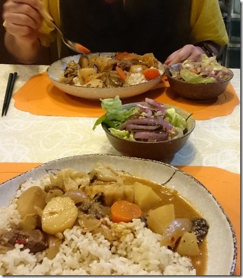 具だくさんレッドカレー。腹ペコくんは特盛りにしていました。