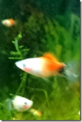 水槽のウイローモスの成長が早くて、すぐに伸びる。稚魚にとっては隠れる場所が出来るけれど、少し身体が大きいプラティは時々泳ぎにくそうにしている。
