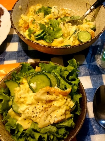 午後7時半過ぎに大人の生徒さんの2レッスンでしたので、マカロニサラダを作っておきました。久しぶりだったので、マカロニの食感がなく、タマゴは半熟だったので、クリーミーな感じのサラダになって失敗作でしたが、はじめさんに「お店のサラダみたいだよ」と言われました。