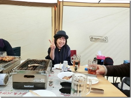 コーさんが「芋煮」を作ってくれている間に厚焼き牛タンとベーコンしめじを焼き焼きしました。