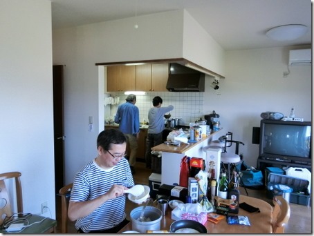 朝風呂の後、美味しい珈琲をノンさんが淹れてくれました。昼食は昨日の芋煮を「カレーうどん」にリメイク。