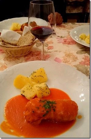 クラクフのオシャレなレストランではロールキャベツにジャガイモが添えられていた。