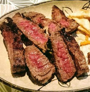 流石にヘトヘトだったようで、今晩は十勝産のステーキと十勝ワイン「ツヴァイゲルトレーベ」にしました。酸味がありスッキリとした味わいで、これも樽の香りがあり美味しい~。はじめさんも「疲れが吹き飛ぶわ!」と絶賛。