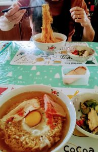 土曜日の午前中は大体レッスンでお昼を過ぎるので、最近の我が家がすぐ食べられるチキンラーメンを常備しています。今日は、お腹が空いてネギを切るのを忘れた…!