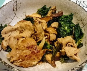先日作った「ふき味噌」を使って豚肉にまぶしておきました。それとニセコで買った「やちぶき」とシイタケで炒めました。ナイス!
