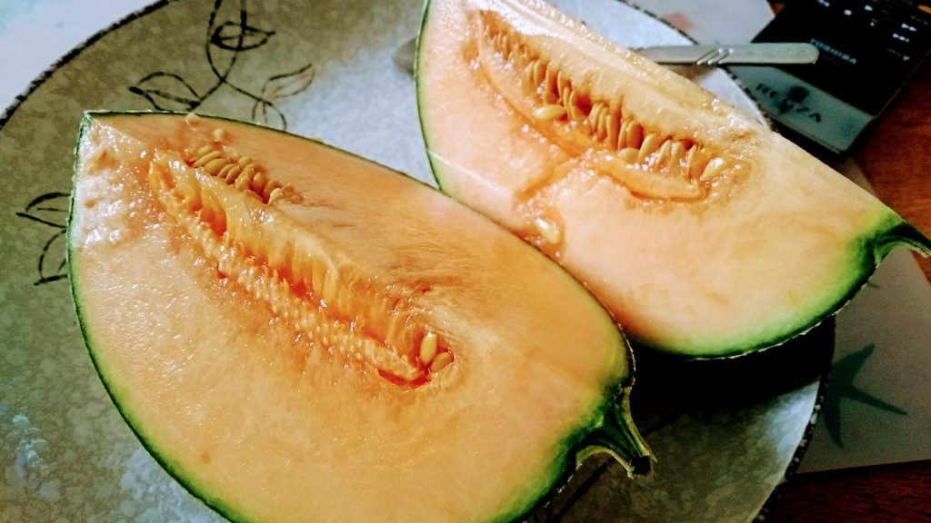大きなメロンが冷蔵庫の面積を陣取っています。しかし、メロンの食べごろってよく分かりません。取り敢えず、冷蔵庫からどかしたいので食べる事にしました。