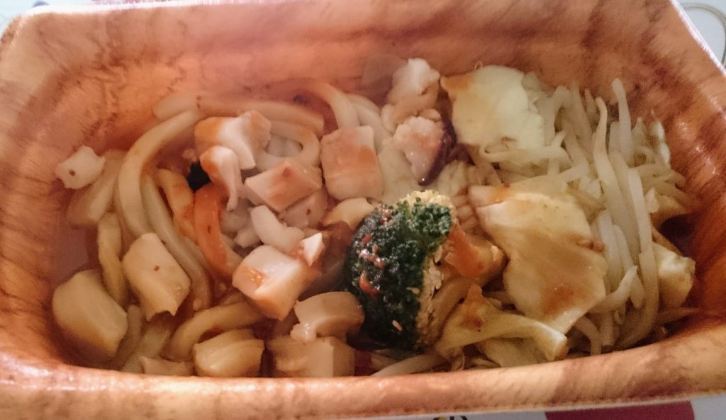 ランチは「海鮮うどん」っぽいのですが、うどんが極少量だったので、ご飯や煮卵、大豆、サラダなどを足して食べました。