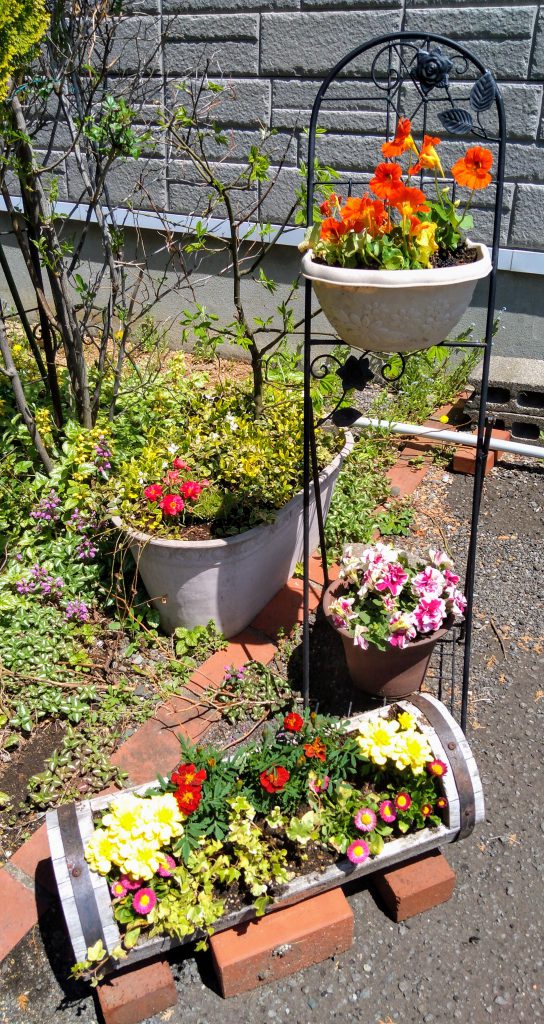 玄関の寄せ植えも少しずつ
