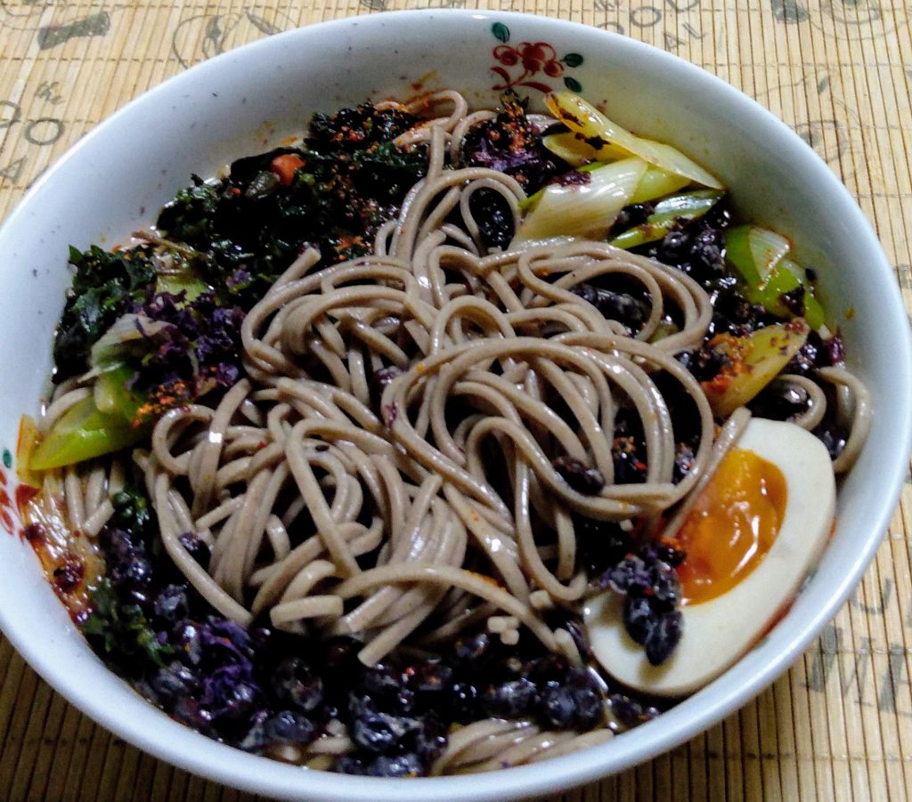 黒豆納豆・しその実・ふのりの黒いお蕎麦。身体に良さそうなものばかりで美味しかったです。明日も元気にピアノを弾こう!