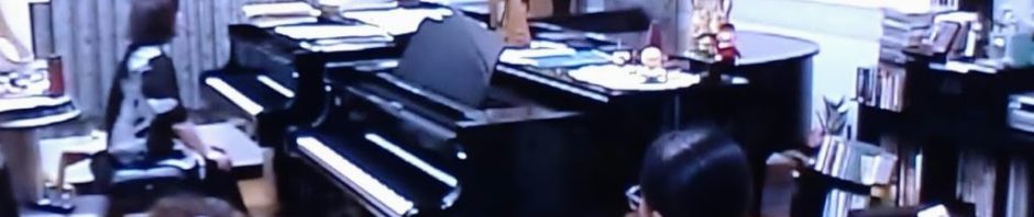 全体を交差しながらの演奏に挑戦の大人の生徒さん。ペダルを活用して音から音へ跳びます。ダイナミックに演奏してください。