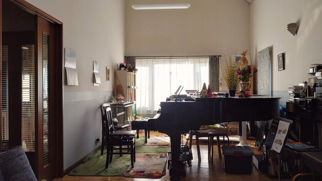 リビングは扇風機をつけてアイスコーヒーを飲みましたが、レッスン室に入ると肌寒い!半袖にカーディガンを羽織りました。
