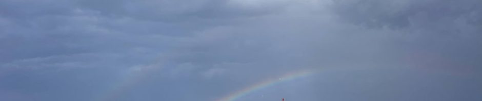 奥の方は消えかけてきましたが手前ん虹は海にかかっていて綺麗でした。海の色もエメラルドグリーンで虹がクッキリと見えます。家の中に居ては、こんな風景は見られないので、やはり外に出る事は大きいです。
