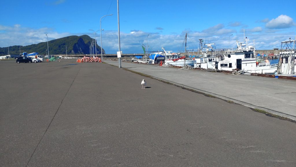 マリーナに行くと、駐車場に最近よく見る、ちょっと年を取ったカモメがうずくまっていました。