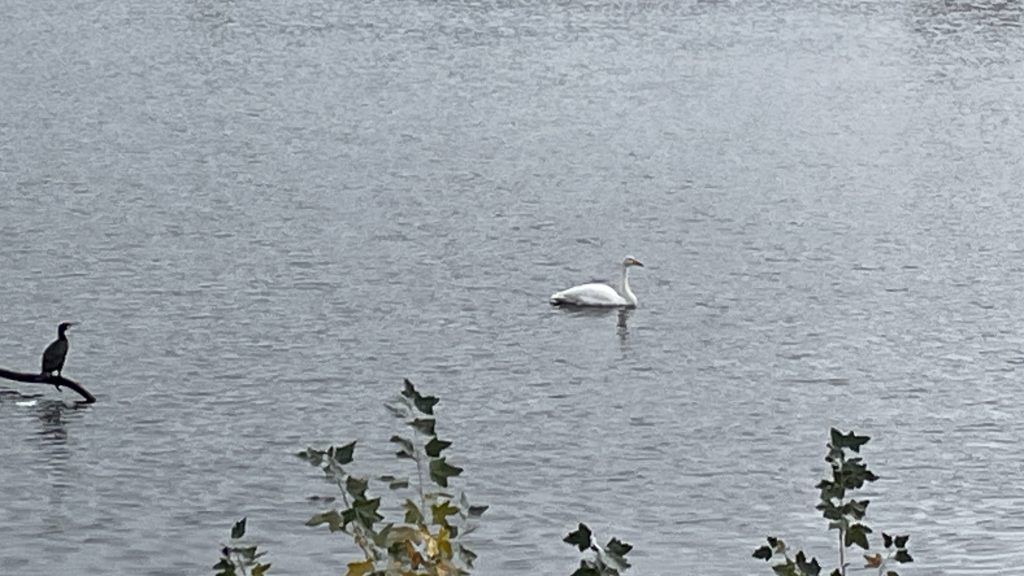 川鵜も近くで見たら、けっこう大きな鳥ですが、白鳥は真っ白で目立ち、そして大きい。白鳥は佇まいが優雅です。長い首と白い羽毛が織りなす姿、水面を滑るような動き、しかし、水面下では激しく水をかいて必死に泳いでいるのだとか。傍からは全く、そのように見えません。