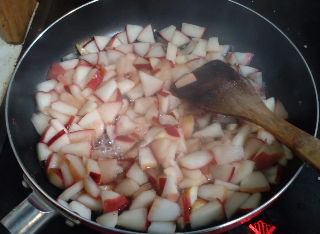 私は小ぶりな「あかね」二玉を使ってジャムを作った。今季のジャム作りは3度目。自宅の庭で収穫したワイルドストロベリーを冷凍庫に入れて保管してたが、それが大量にあった。そして、観光農園で買ったブルーベリー、そして今日の林檎。
