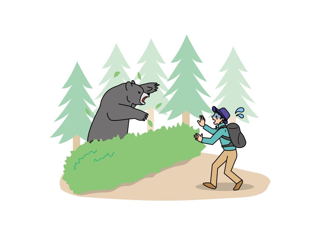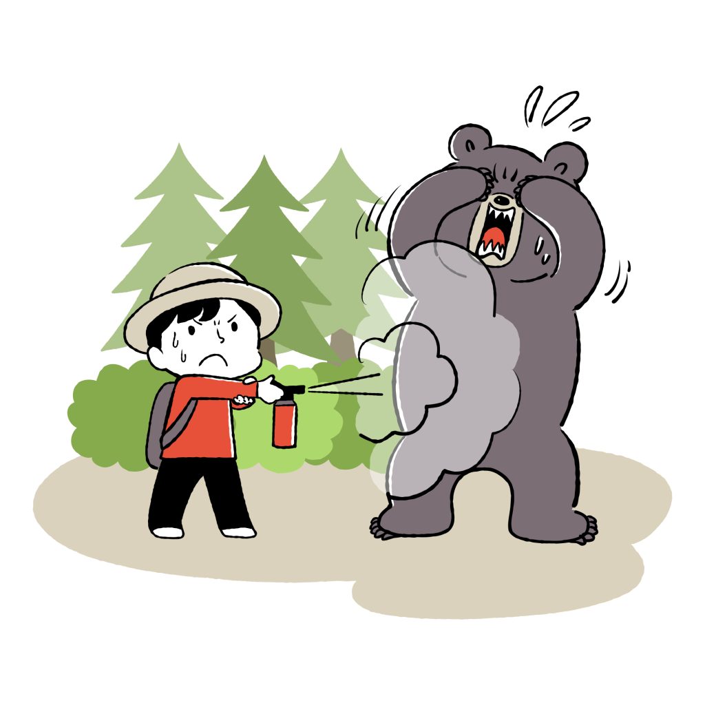 クマと遭遇したらパニックになると思います。スプレーは安全ピンを外し、かなり至近距離までクマを引き付けてから正確に目や鼻を狙って噴射しなければ効果がありません。風向きによっては自分が浴びてしまう可能性もあるのです。