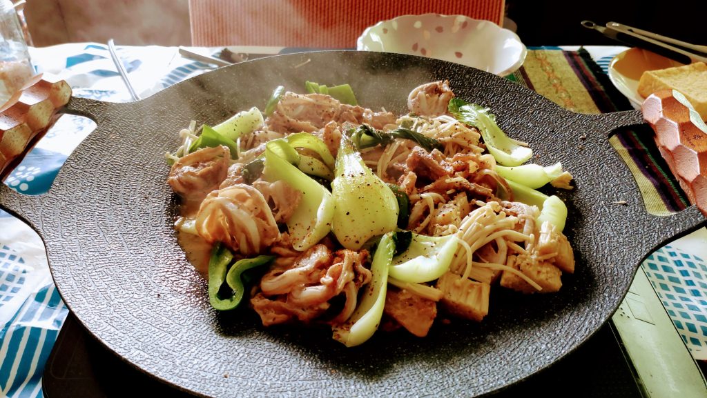 昨日、「かにしち」さんで久しぶりに生姜焼きを買った。それとブタ軟骨はスモークにして欲しかったのだが、一緒に焼き焼きした。野菜はチンゲンサイとピーマン。お肉によく合いました。