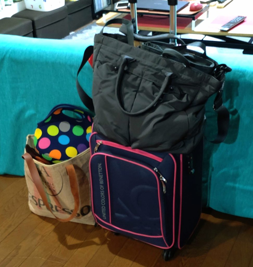 トルコ旅行のときの荷物を思い出して、なんとか工夫してコンパクトにまとめた。マジックハンドやS字フック、軽いモクのタオル、ユニクロCの大きなバッグに書類やPCを入れる。小さいバッグには財布やスマホなど。時計を見ると午後6時!午後8時まで2時間ピアノを弾いた。