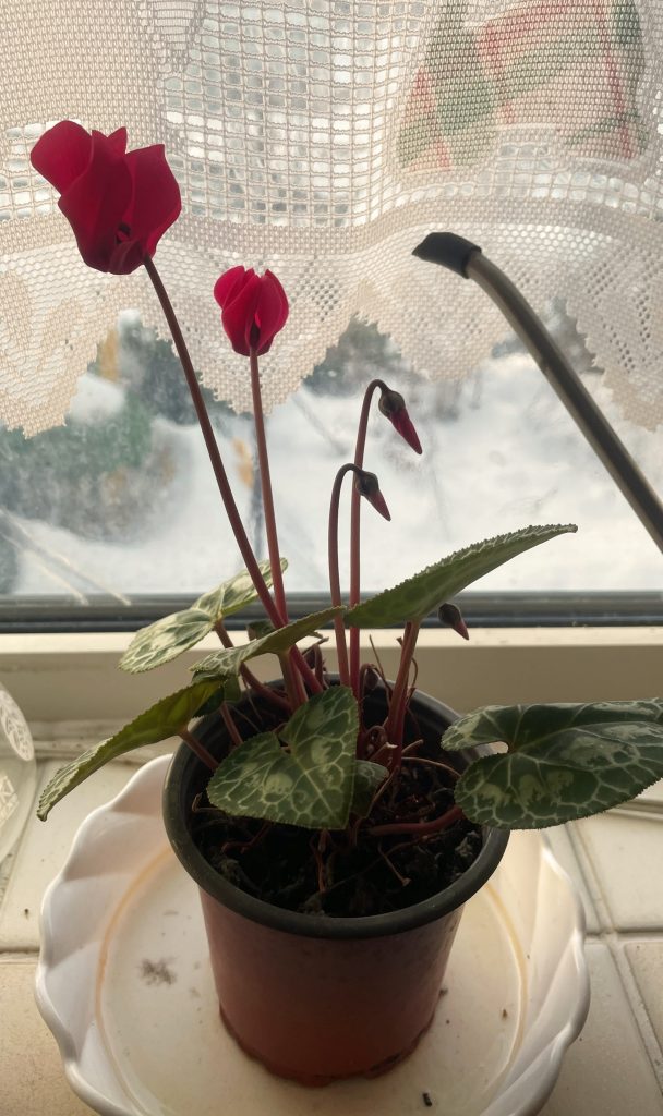 我が家は、あまり涼しい箇所がないので、シクラメンを育てるのは難しいのだが、キッチンの窓辺に置いたところ、かなり長い期間、元気が良い状態で育ている。私が入院していた数日も、はじめさんが水遣りをしてくれた。