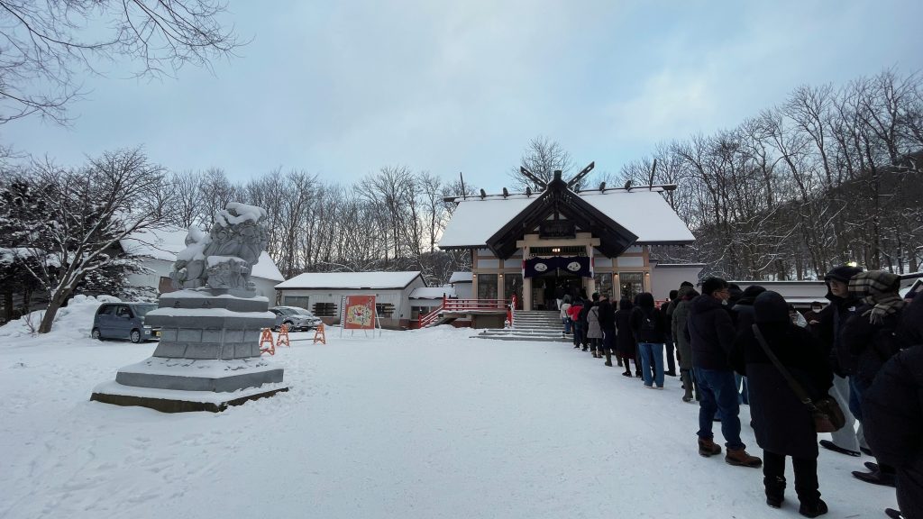 午後3時でも混んでいた余市神社