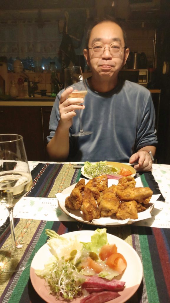 ケンタッキーのは全て骨が付いていますが、鳥ムネニクなので骨がなく食べやすかったです。作ったのは はじめシェフ。「まぁケンタッキーと同じではないけど、美味しい唐揚げができた」とご満悦。明日は景品分。気合を入れて取り掛からないと、翌日はレッスンです。