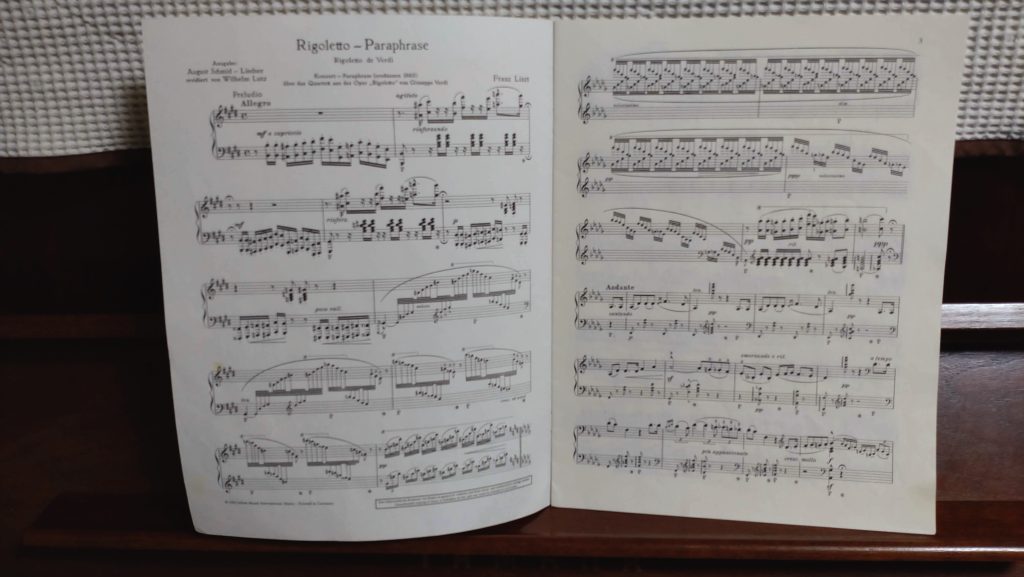 ヴェルディのオペラ「リゴレット」から第3幕の四重唱「愛しい人の名は」の旋律に基づいて天才リストはピアニストが独りで演奏するように書いてしまうのだから本当にスゴイ!後半の同音連打は苦労したなぁ。オクターブの連続や左手メロディに対し、細かく速い右手のパッセージ。でも、この曲が大好きだったことは覚えている。しかし、弾き続けないと忘れてしまうのだ…