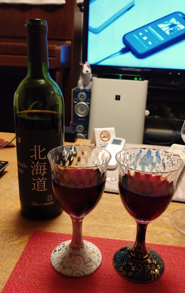 昨夜は我が家のワインの日だったので信長のグラスと勝手に名付けたお気に入りおグラスで飲みました。