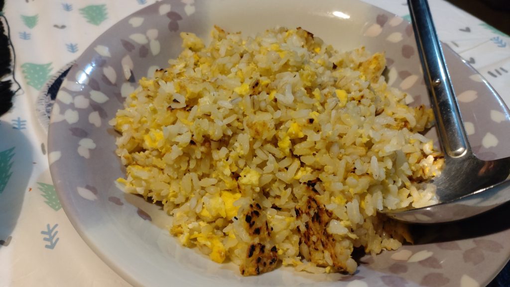 水曜日に炊いたご飯の残りでチャーハン。麦入りなのでプチプチチャーハンで美味しかった。