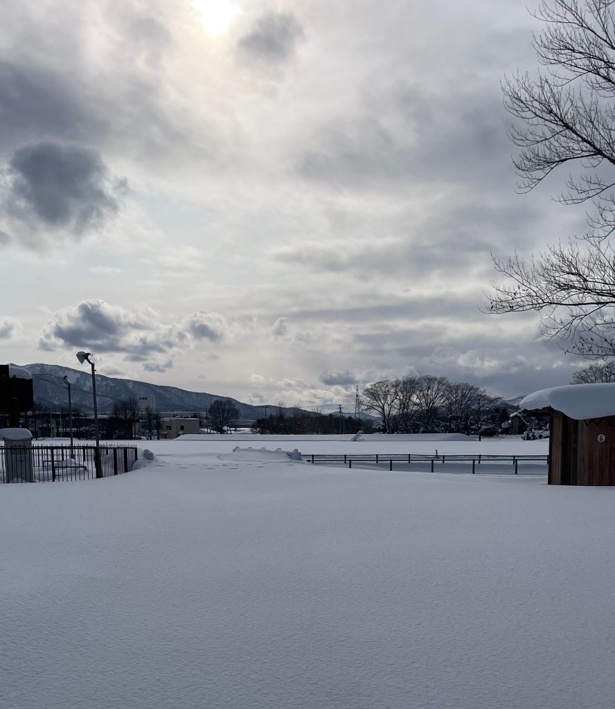 2件のスーパーでお買物。それぞれでタマゴを1パックづつ買いました。午後の運動公園。雪も降らず、とても穏やか。