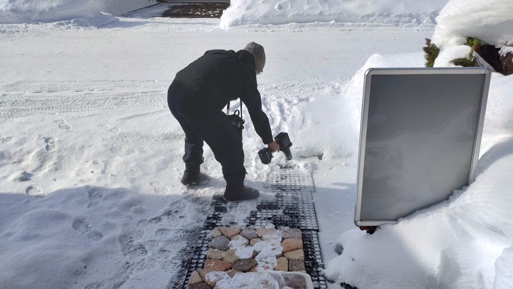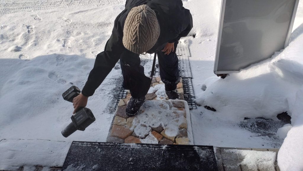 玄関の階段の雪を融かす