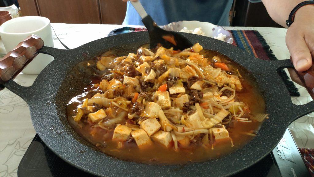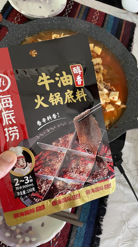 前回食べたときに、その辛さに驚いたものです。老干媽の火鍋では、汗をかくことなく美味しく食べられまたが、海底撈のは辛い物好きの我々でも、相当に辛い。