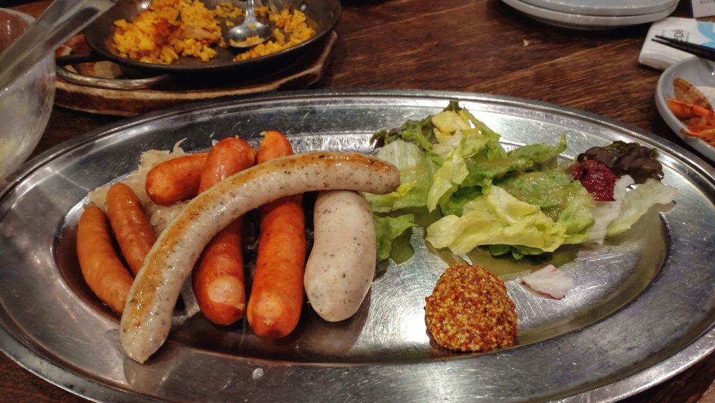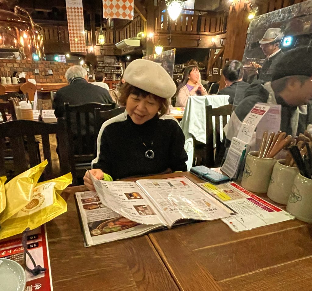 ノンさんと合流。ビールは2000円で飲み放題。季節のビール「スモークビール」は以前は苦手でしたが、今日はとても美味しい。Sサイズを2杯飲みました。ソーセージの盛り合わせをはじめ、お料理は、どれも美味しい。