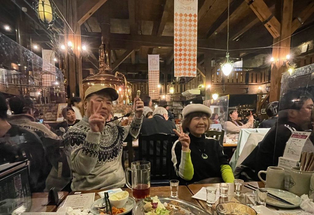 雪あかりの路の観光客も多く大盛況の小樽ビール倉庫No.1。予約なしでも倶楽部の席が用意されていて安心でした。