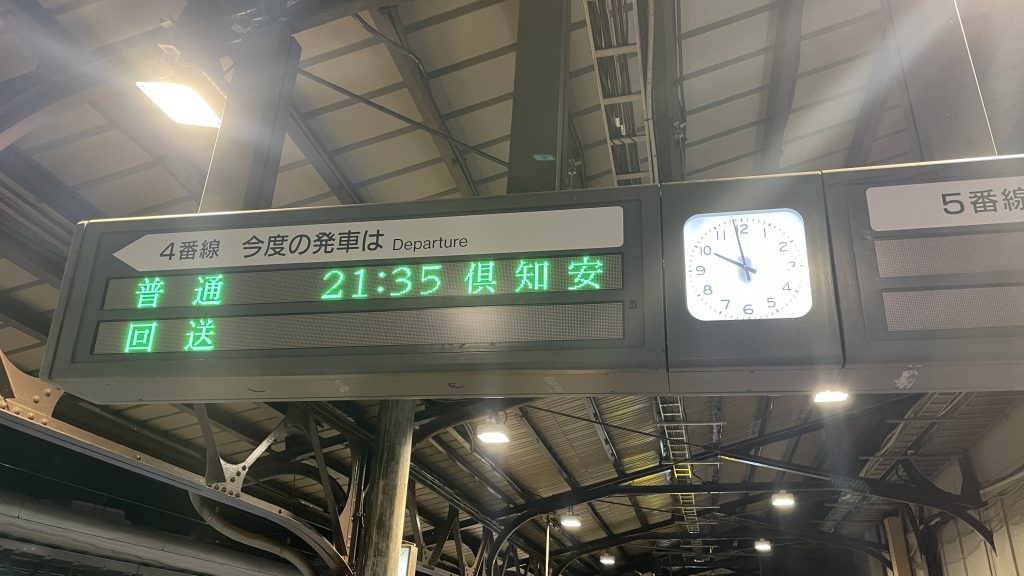 最終の1本前で帰宅しようと思ったら、まず札幌行きの列車が動いていないようで大混雑。ノンさんと一緒に余市へ避難しましょうかと思っていたら、札幌行きが来ました。そして、私たちは21:35分に乗ろうと思っていましたが、これが駄目になり、結局22:30の最終まで寒空の下で待たされました。「冬こそJR」はウソですね。寒かったです!