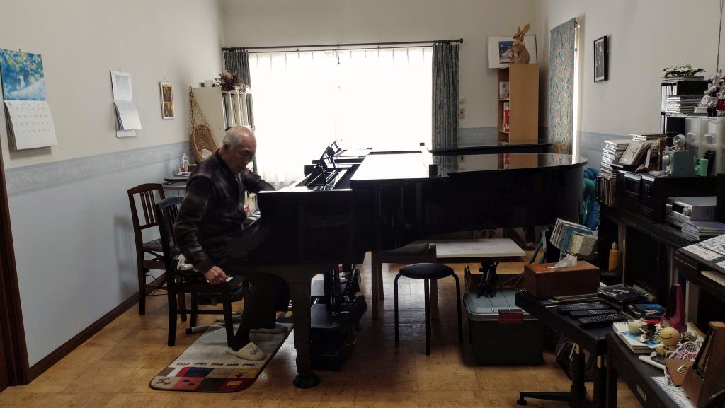 9時半からレッスン室の2台のグランドピアノの調律。今日は、かなり時間がかかり、我々がスノーシューから戻っても、暫く調性が続きました。